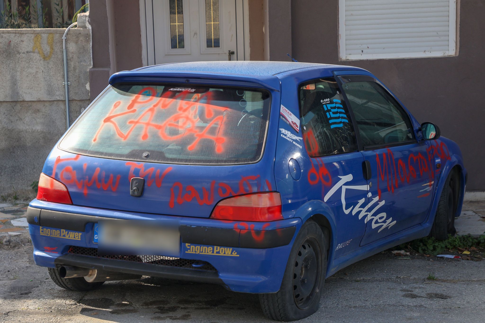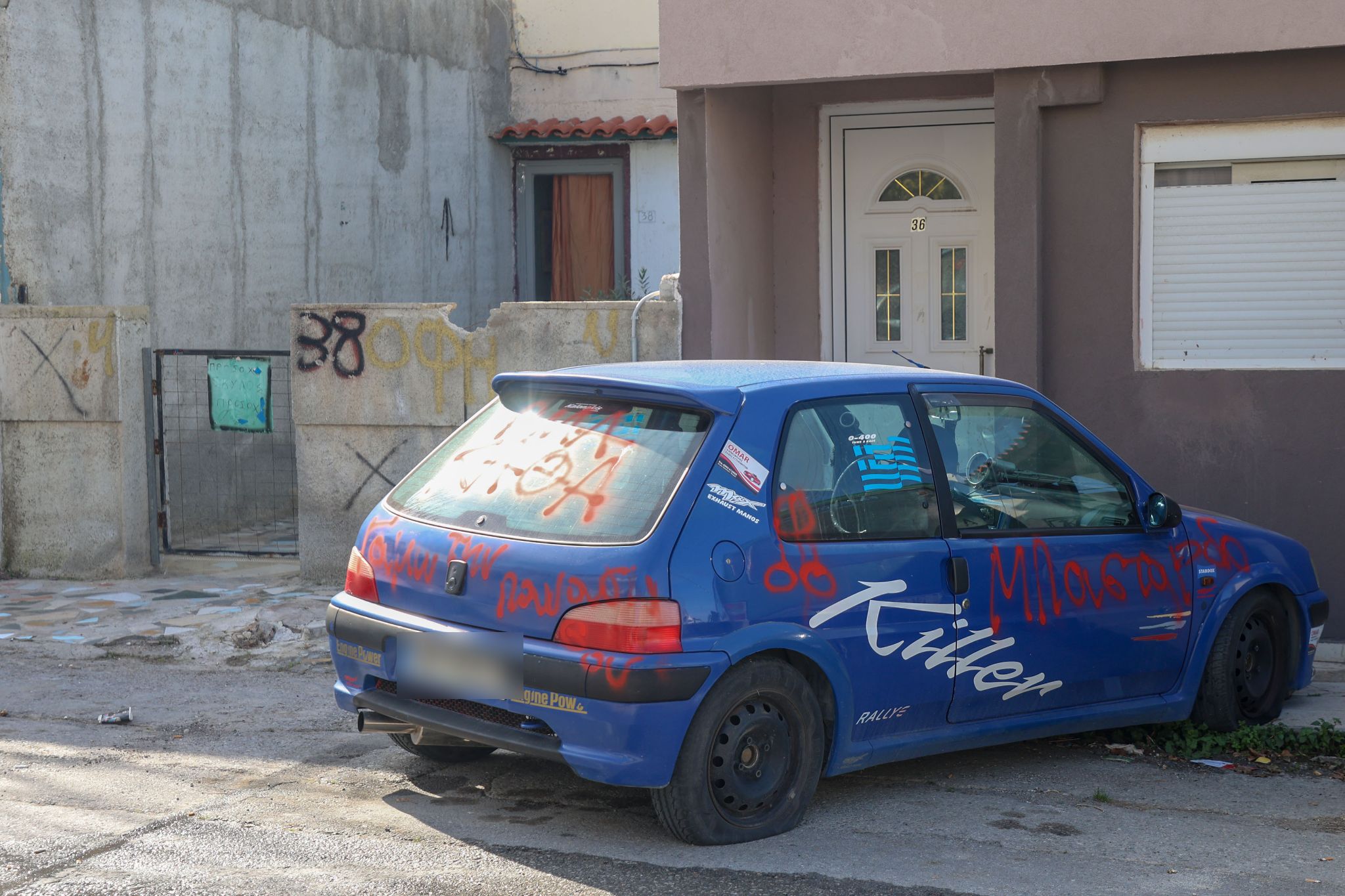 Με κόκκινο σπρέι έγραψαν υβριστικές εκφράσεις στο μπλε ΙΧ που ο 44χρονος είχε "διακοσμήσει" με το παρατσούκλι "Killer"