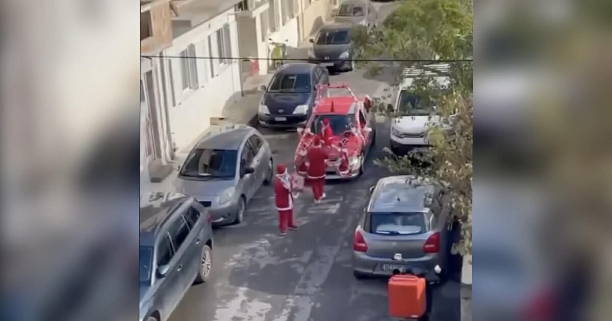 Πρωτοχρονιάτικο χρώμα με τον δικό τους τρόπο έδωσαν τα μέλη μιας οικογένειας που εντοπίστηκαν να "λένε" τα κάλαντα σε γειτονιά της Νέας Αλικαρνασσού.