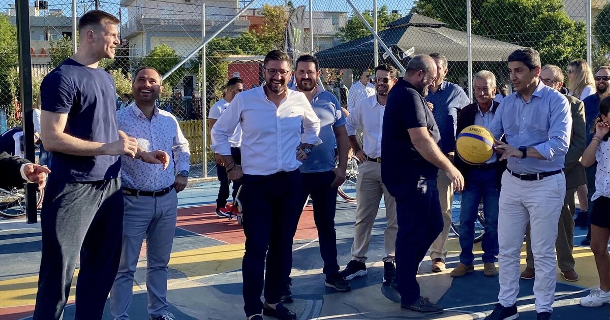 Η φωτογραφία είναι από τα εγκαίνια του δημοτικού γηπέδου μίνι μπάσκετ του Δήμου Μαλεβιζίου