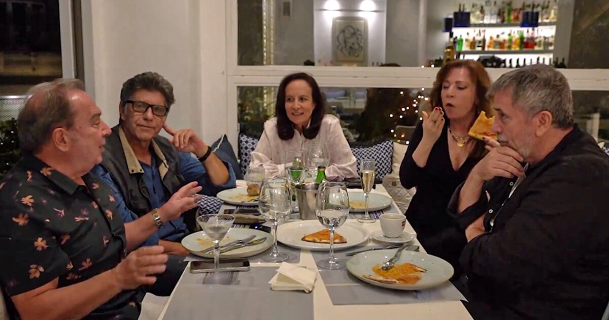 Οι τέσσερίς τους γευματίζουν σε κάποιο εστιατόριο και συζητούν.