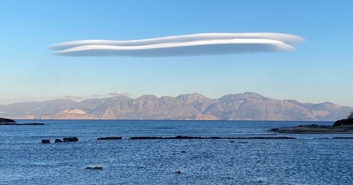 Δυο περισπωμένες πάνω από τα Σητειακά βουνά το Σάββατο πριν το σούρουπο όπως φαίνονταν από Ελούντα.