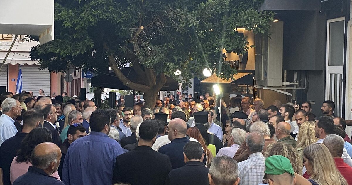 Πάρα πολύς ήταν και ο κόσμος που είχε γεμίσει ασφυκτικά τη μικρή πλατεία, για να ακούσει αλλά και να μιλήσει με τον Πρόεδρο του ΠΑΣΟΚ.