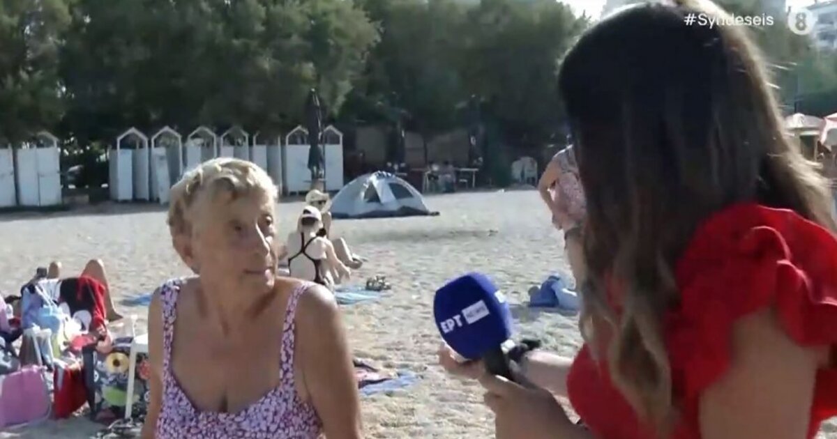Στη συνέχεια η ρεπόρτερ της πρότεινε να… ψάξουν για γαμπρό στην παραλία, αλλά τελικά η κυρία αρνήθηκε την… απόπειρα προξενιού γελώντας.