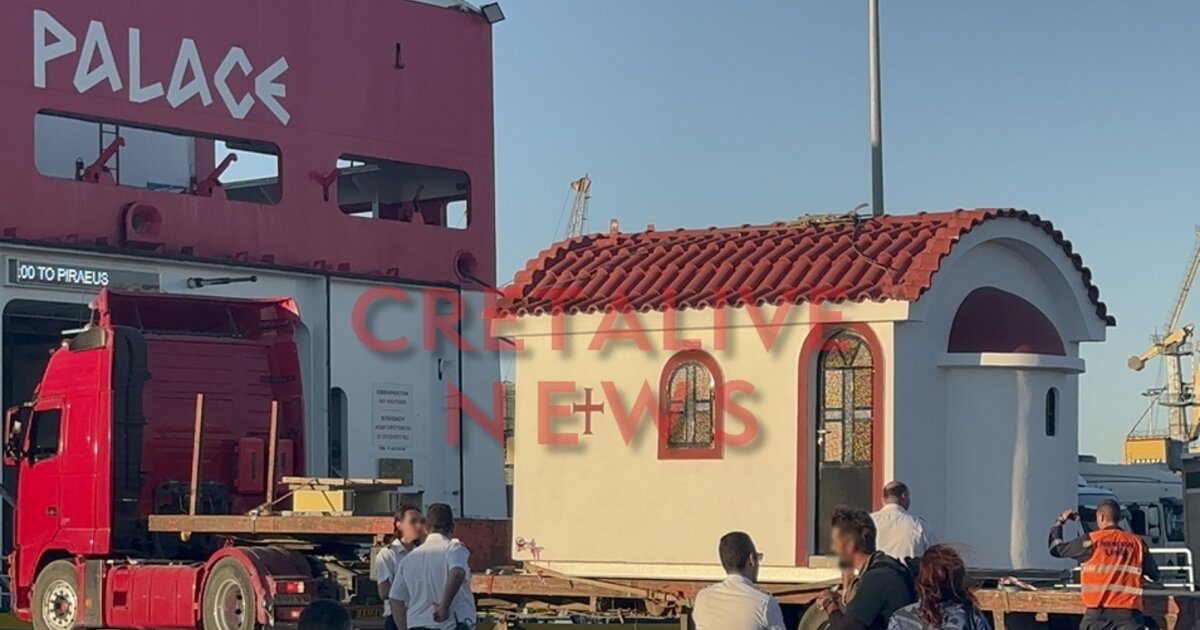 Το απογευματινό πλοίο από Πειραιά κατέφτασε στο Ηράκλειο την Πέμπτη, εκατοντάδες επιβάτες βγήκαν από αυτό, πολλά και τα οχήματα, συνηθισμένη εικόνα για το λιμάνι της πόλης, όχι όμως συνηθισμένο να βλέπεις ένα... εκκλησάκι να αποβιβάζεται από το πλοίο!