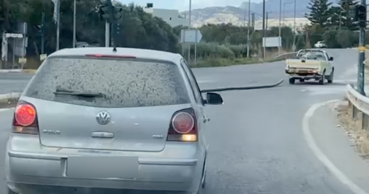 Πίσω του ακολουθούσε δεύτερο όχημα με αναμμένα αλάρμ, προφανώς για να προειδοποιεί τους διερχόμενους οδηγούς και να αποτραπεί τυχόν ατύχημα. Παρότι φαίνεται πως η μεταφορά γινόταν με προσοχή, η εικόνα δεν πέρασε απαρατήρητη, προκαλώντας πολλά σχόλια και ερωτήματα για τις συνθήκες μεταφοράς του υλικού και τα μέτρα ασφαλείας που τηρούνται σε τέτοιες περιπτώσεις.