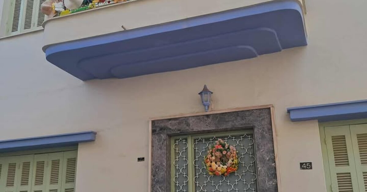 Η φωτογραφία, που έστειλε στο Cretalive ο Ηρακλής Παχιαδάκης, δείχνει την πρόσοψη ενός σπιτιού με εντυπωσιακό στολισμό. Στον πάνω όροφο, το μπαλκόνι είναι γεμάτο πήλινα αγγεία και βάζα γεμάτα τεχνητά ή φυσικά αποξηραμένα λουλούδια σε έντονα χρώματα - ροζ, κίτρινο, κόκκινο, μπλε, λευκό κ.α.