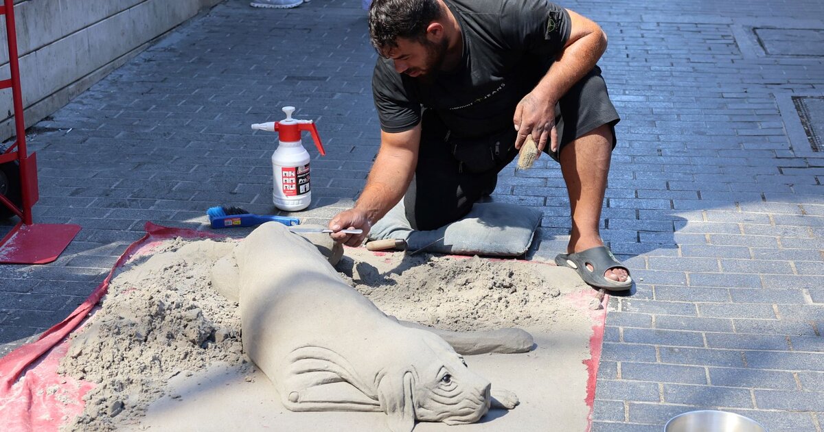 Ένα υπέροχο γλυπτό σμιλεμένο από έναν καλλιτέχνη του δρόμου, με βασικό υλικό την άμμο, κέντρισε τα βλέμματα περαστικών χθες το πρωί στο κέντρου του Ηρακλείου.