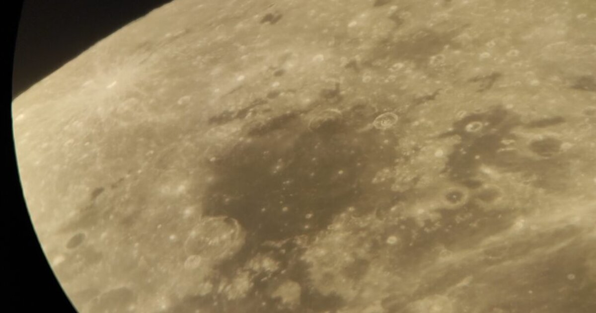Η εικόνα προσομοιάζει τι βλέπει ένας αστροναύτης όταν βρίσκεται σε τροχιά 1000 χλμ από το φεγγάρι. Είναι σα να κοιτάει κανείς μέσα από το φινιστρίνι ενός διαστημόπλοιου.