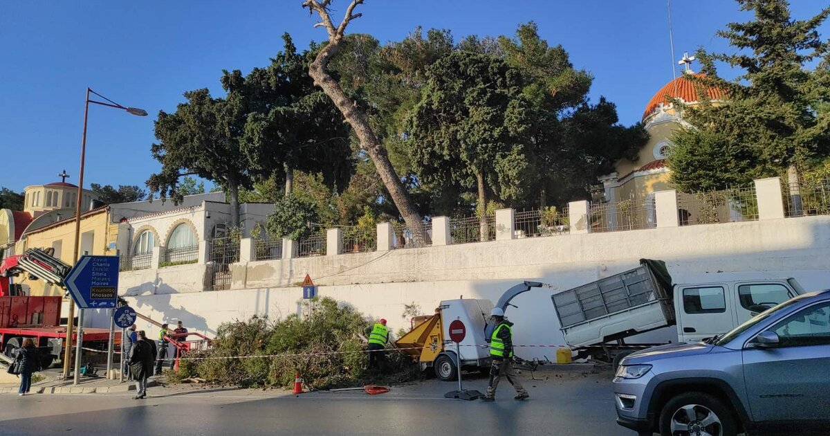 Πάντως συνεργάτης του Cretalive που βρέθηκε εκεί σήμερα αντιλήφθηκε πως αυτό που είχε δημοσιεύσει από χθες το Cretalive, ότι δηλαδή θα γίνει παρέμβαση κοπής των επικίνδυνων κλαδιών, υλοποιείται. Ήδη βρίσκονται εκεί συνεργεία της υπηρεσίας Πρασίνου προκειμένου να το κλαδέψουν πριν εκείνο πέσει πάνω από τα κεφάλια συμπολιτών μας που θα βρεθούν για κάποια κηδεία ή για να φροντίσουν τον τάφο κάποιου συγγενή τους!