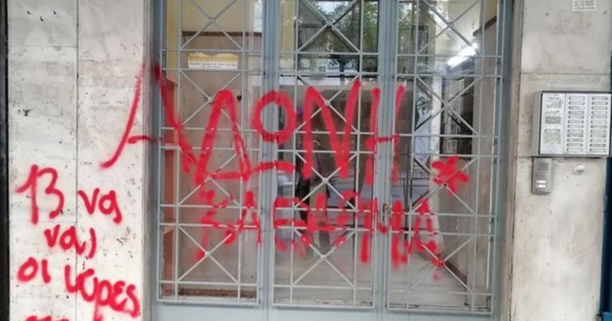 Άγνωστοι έγραψαν συνθήματα με κόκκινη μπογιά στην είσοδο του κτiρίου, όπου στεγάζεται το γραφείο του.