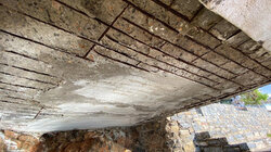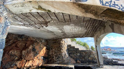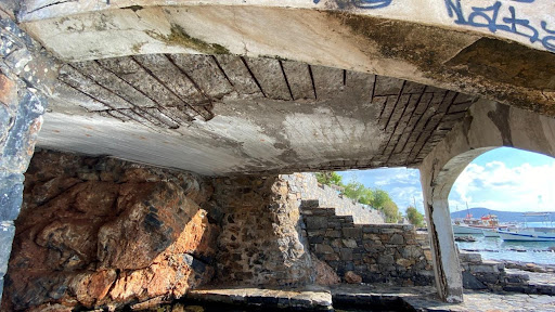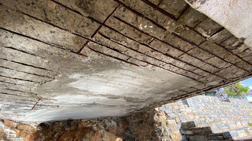 Οι πληροφορίες μας λένε ότι εδώ και τουλάχιστον μια τετραετία, το άκρως επικίνδυνο σκέπαστρο από ευτελές και αποσαθρωμένο σκυρόδεμα είναι επικινδύνως ετοιμόρροπο.