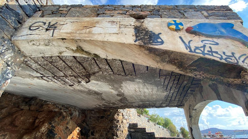 Οι πληροφορίες μας λένε ότι εδώ και τουλάχιστον μια τετραετία, το άκρως επικίνδυνο σκέπαστρο από ευτελές και αποσαθρωμένο σκυρόδεμα, της υφάλμυρης πηγής της «Βλυχάδας» ακριβώς δίπλα στο καρνάγιο, μέσα σε αστική περιοχή που σφύζει από πεζούς, πάνω στον παραλιακό δρόμο από Ελούντα προς Πλάκα, δίπλα σε πολυσύχναστα μαγαζιά εστίασης και στην παραλία, είναι επικινδύνως ετοιμόρροπο και από θαύμα δεν έχει μέχρι σήμερα παρασύρει στο θάνατο τους ανύποπτους επισκέπτες που πατάνε ή κάθονται απάνω του, καθώς είναι στο ίδιο επίπεδο με το πολυάνθρωπο πεζοδρόμιο από περιπατητές ιδιαίτερα αυτήν την περίοδο! Αλλά και εκείνους που πάνε να ξεπλυθούν από το μπάνιο τους στην υφάλμυρη πηγή. Το πεζοδρόμιο που κι εκείνο βρίσκεται μέσα στον αιγιαλό όπως και το στέγαστρο, το έχει κατασκευάσει η δημοτική αρχή η οποία όπως μαθαίνουμε αποφεύγει όλα αυτά τα χρόνια για τη σωστική παρέμβαση στη σκεπή της υφάλμυρης πηγής αποτρέποντας μια επικείμενη τραγωδία. Συνεργάτες του Δημάρχου και ο ίδιος ο Δήμαρχος είναι γνώστης του θέματος καθώς τον έχουν επισκεφτεί συγκεκριμένοι κάτοικοι όπως μαθαίνουμε για να του αναφέρουν το θέμα! Η δεικτική αδιαφορία είναι μάλιστα τέτοιου μεγέθους που κανένας δεν έχει τοποθετήσει έστω μια αποτρεπτική πινακίδα προσέγγισης για τους ανύποπτους διερχόμενους, ούτε έστω έχει γίνει περίφραξη του χώρου! Το στέγαστρο αυτό που είναι κατασκευασμένο πάρα πολλά χρόνια, σκεπάζει τη δημοφιλή υφάλμυρη πηγή «Βλυχάδα» όπου τα παλαιότερα χρόνια της λειψυδρίας νοικοκυρές της Ελούντας ερχόταν για να ξεπλένουν τις μπουγάδες τους. Σήμερα παραμένει ένα αξιοθέατο που έχει μετατραπεί σε άκρως θανάσιμη παγίδα η οποία είναι βέβαιο ότι δεν θα συμπαρασύρει στο θάνατο μόνο τους ανύποπτους που θα καθίσουν στη σκεπή του, αλλά θα καταπλακώσει και αυτούς που συχνά από περιέργεια πηγαίνουν στην πηγή και κυρίως τα ανύποπτα μικρά παιδιά!