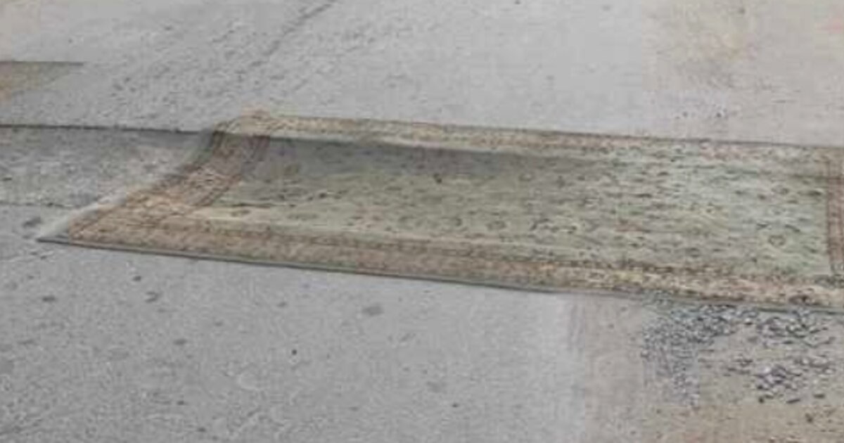 Έστρωσαν χαλί για να καλύψουν τη λακκούβα!