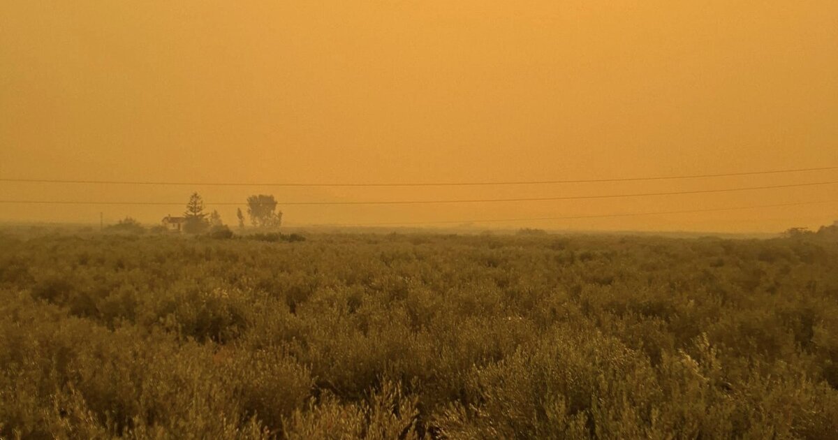 Όπως φαίνεται και στις φωτογραφίες που έχουν δημοσιευτεί στην ομάδα του Facebook "ΜΕΤΕΩΚΡΗΤΕΣ" ο καπνός έχει σκεπάσει μέχρι και τις Μοίρες Ηρακλείου, με τους κατοίκους να μεταφέρουν πως "πνίγονται" και τον ουρανό να "βάφεται"... πορτοκαλί!
