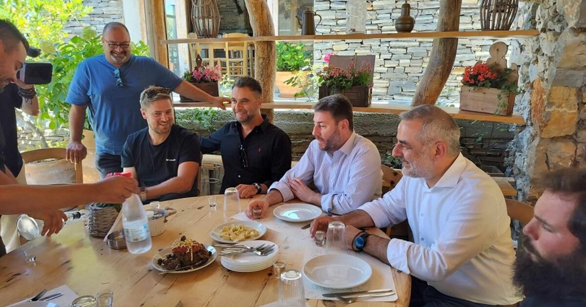 Εκεί ξεναγήθηκε στο μοναδικό Δικταίο Άντρο και στη συνέχεια, μαζί με φίλους και στενούς συνεργάτες, ήπιε μια ρακή με τις σχετικές ευχές για την αυριανή εκλογική ημέρα να συνοδεύουν τις συζητήσεις.
