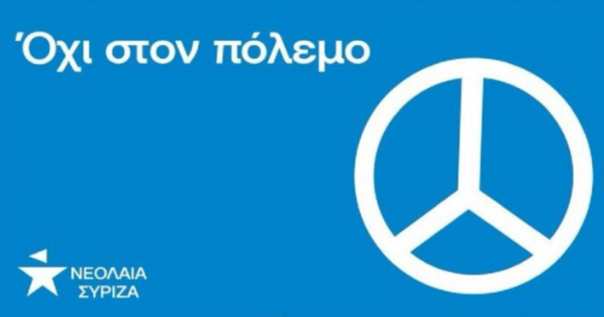 Ένα μήνυμα κατά του πολέμου θέλησαν να στείλουν στα social media οι νεολαίοι του ΣΥΡΙΖΑ, αλλά η γκάφα έγινε! Με αφορμή την εισβολή στην Ουκρανία έφτιαξαν ένα γραφικό με τα λογότυπά τους και θέλησαν να βάλουν και το σήμα της ειρήνης. Μόνο που η επιλογή ήταν πολύ άστοχη, αφού αντί το πασίγνωστο σήμα της ειρήνης, έβαλαν το logo της Mercedes.