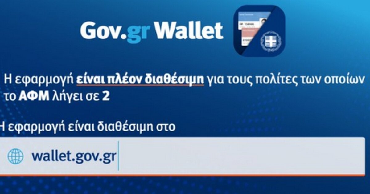Gov.gr Wallet: Άνοιξε η εφαρμογή για τους ΑΦΜ που λήγουν σε 2