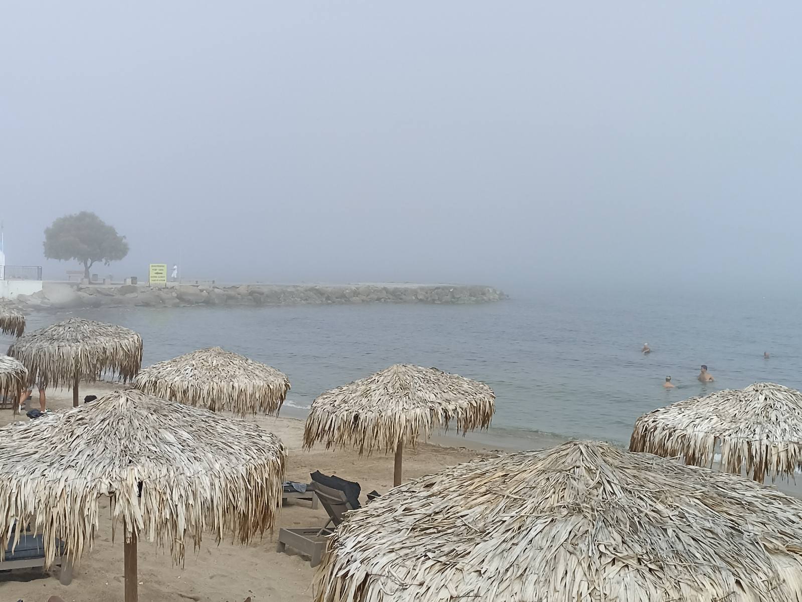 Κάτοικοι και περαστικοί αναφέρουν πως "χάθηκαν" τα βουνά και η θάλασσα, θυμίζοντας σκηνικό από ταινία. Παρ' όλα αυτά, αρκετοί δεν έχασαν το κέφι τους για ένα ακόμη απολαυστικό μπάνιο στη θάλασσα!