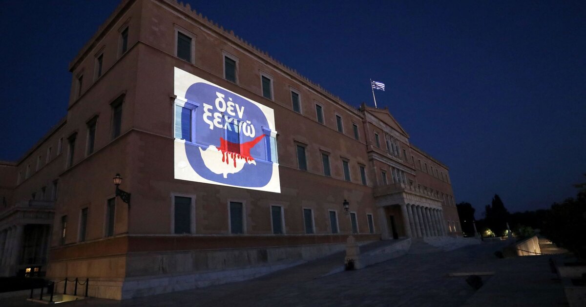 Με το εμβληματικό σήμα «ΔΕΝ ΞΕΧΝΩ» για την εισβολή του «Αττίλα» στην Κύπρο, το 1974, φωταγωγήθηκε το Μέγαρο της Βουλής των Ελλήνων, καθώς φέτος συμπληρώνονται 50 ολόκληρα χρόνια από την παράνομη τουρκική στρατιωτική εισβολή στη Μεγαλόνησο.