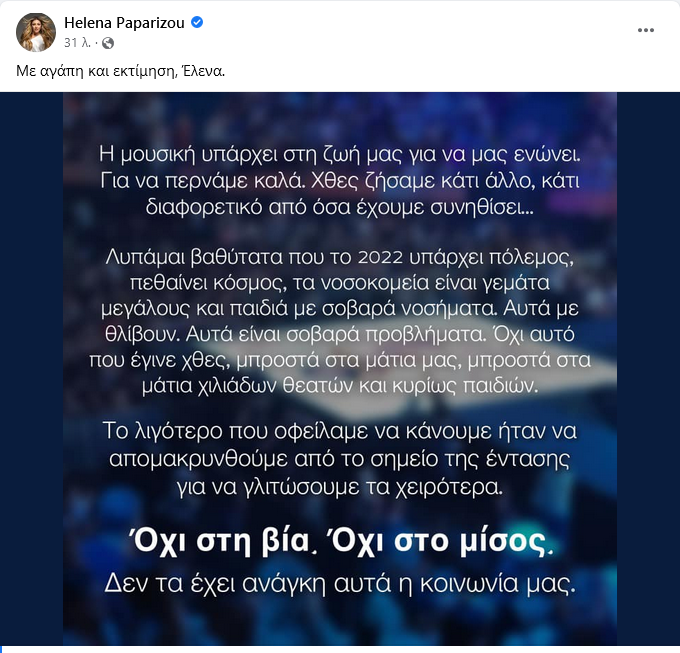 Δείτε την ανάρτηση της Έλενας Παπαρίζου