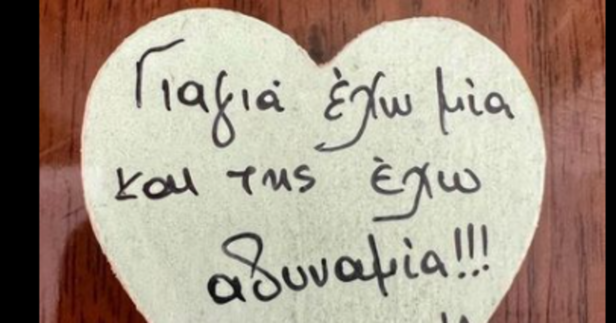 Ο εγγονός της Ντόρας Μπακογιάννη, της πήρε δώρο μια ξύλινη καρδιά, η οποία γράφει «γιαγιά έχω μία και της έχω αδυναμία». Η ίδια το ανέβασε σε φωτογραφία στα social media, γράφοντας στη λεζάντα: