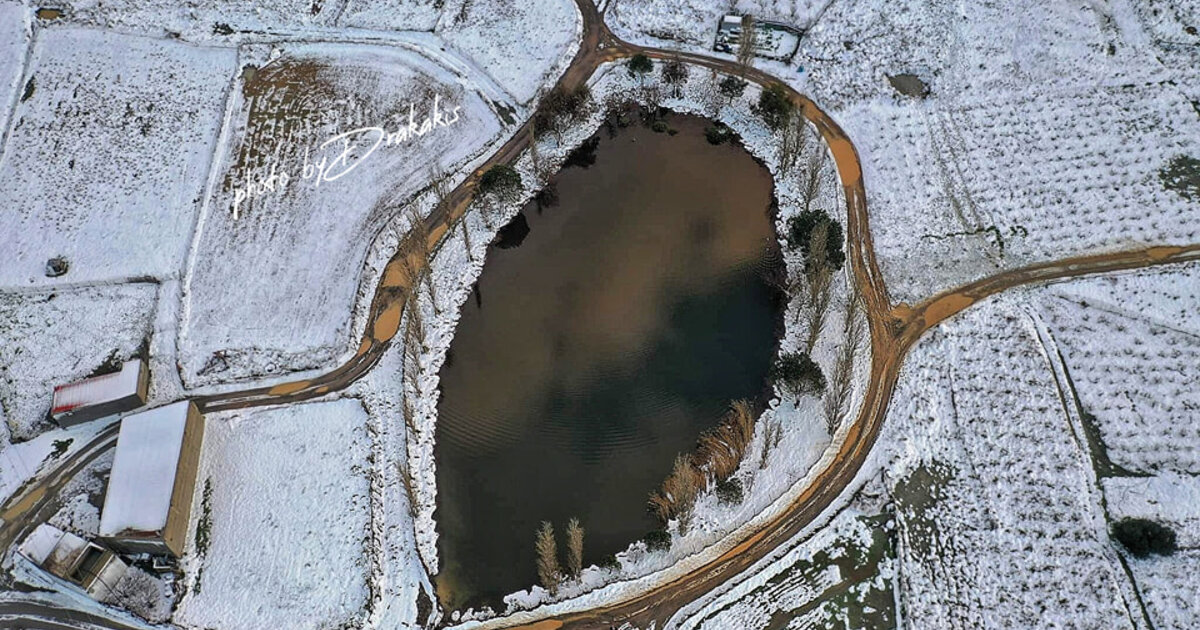 Η χιονισμένη Ζήρος και η λίμνη της από ψηλά