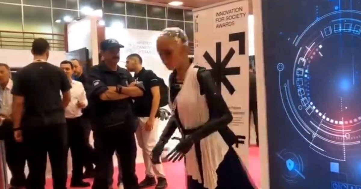 Ένα viral στιγμιότυπο με τη διάσημη πλέον Σοφία, η οποία προσφάτως πέρασε μία βόλτα κι από την Κρήτη. Το γνωστό ρομπότ "έχασε" ένα σκαλοπάτι και έπεσε μέσα στην έκθεση Beyond που πραγματοποιείται στη Διεθνή Έκθεση Θεσσαλονίκης.