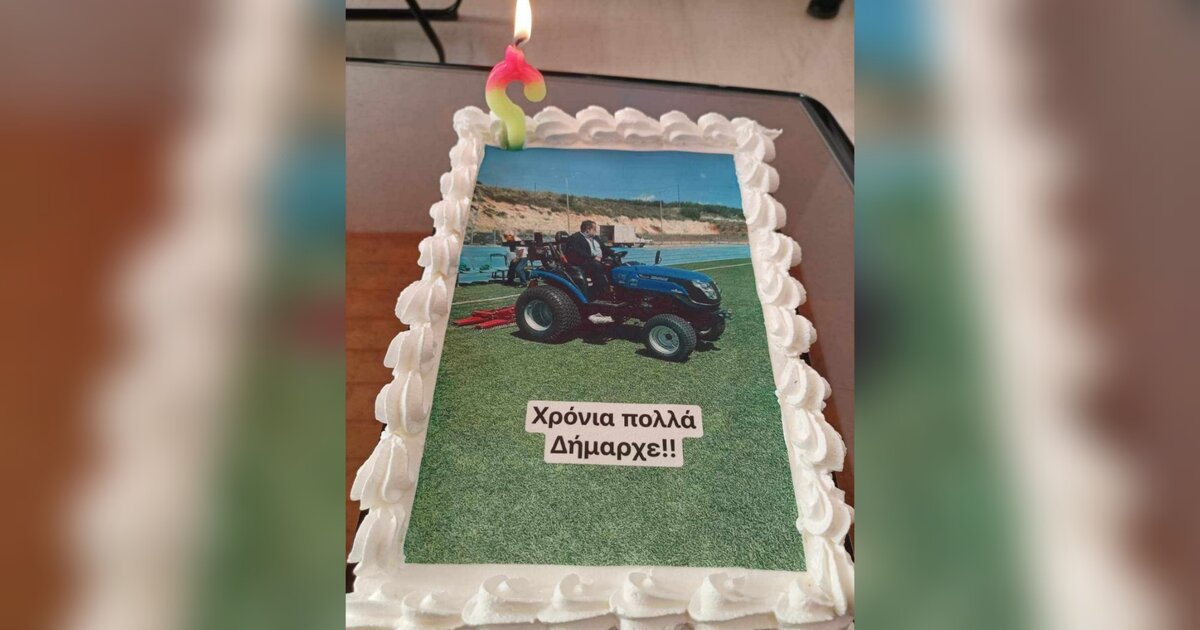 Η φωτογραφία που έκανε τον γύρο του Διαδικτύου τις προηγούμενες ημέρες, με τον Βασίλη Κεγκέρογλου πάνω σε τρακτέρ, κόσμησε την τούρτα γενεθλίων του Δημάρχου