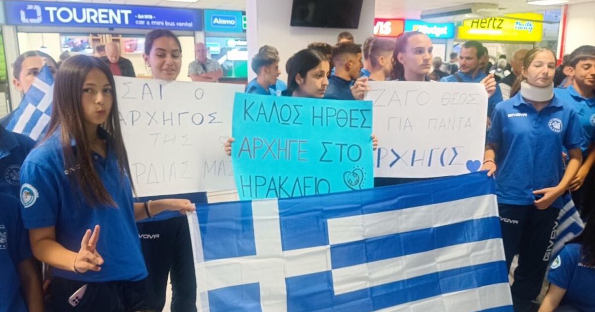 Νέα παιδιά αλλά και μεγαλύτεροι υποδέχτηκαν τον Ζαγοράκη με πλακάτ στο αεροδρόμιο του Ηρακλείου