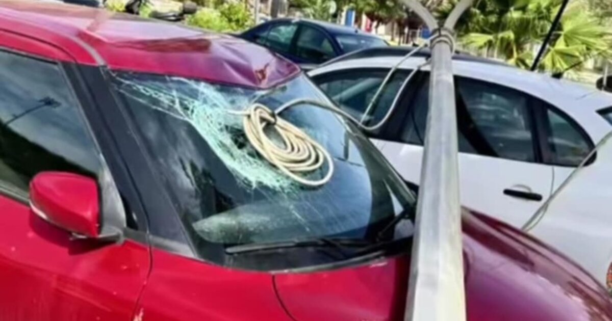 Το δημοτικό φωτιστικό φέρεται πως "ξηλώθηκε" λόγω των ισχυρών ανέμων, με αποτέλεσμα να πέσει πάνω στο αυτοκίνητο προκαλώντας τεράστιες υλικές ζημιές. Στη θέα της καταστροφής η ιδιοκτήτρια του οχήματος υπέστη σοκ, με περαστικούς να σπεύδουν για να την ηρεμήσουν.