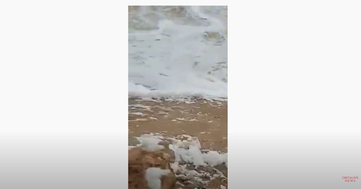Στο βίντεο του αναγνώστη του Cretalive A.K. δείτε πώς ο άνεμος αποσπά τον αφρό από την παραλία στην περιοχή της Αμνισσού, στο Κακό Όρος.