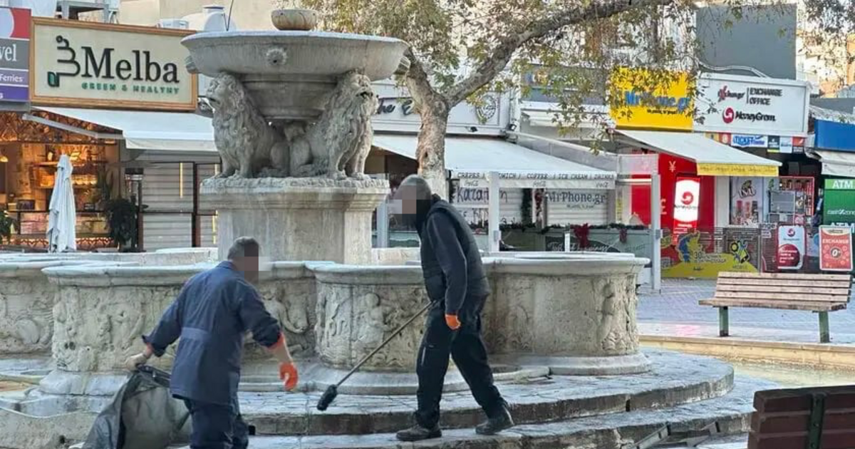 Νωρίς – νωρίς το πρωί της Παρασκευής, σε ένα κατά γενική ομολογία (ακόμα) άδειο Ηράκλειο που ξεκουράζεται πριν ξαναμπεί στη ρουτίνα της καθημερινότητας μετά τις γιορτές των Χριστουγέννων, υπάλληλοι της ΔΕΥΑΗ εθεάθησαν στην Κρήνη Μοροζίνι, τα γνωστά σε όλους Λιοντάρια, στο κέντρο της πόλης, πραγματοποιώντας εργασίες καθαρισμού.