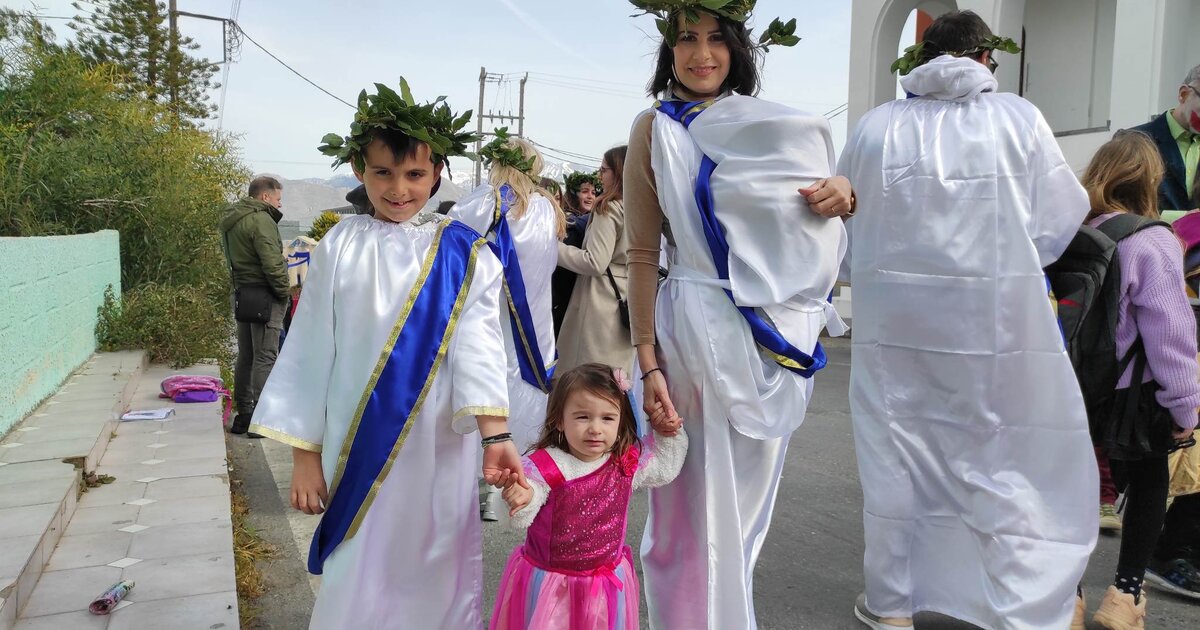Η τριτεκνη μητέρα, με καταγωγή από την Καρδίτσα αλλά με πολύ αγάπη για την Κρήτη, μαζί με τα παιδιά πήραν μέρος στο καρναβάλι, με το άρμα του πολιτιστικού συλλόγου με θέμα "Αρχαίοι Έλληνες", διασκέδασαν και απέδειξαν ότι εάν έχεις καλή διάθεση, δεν σε σταματά τίποτα!