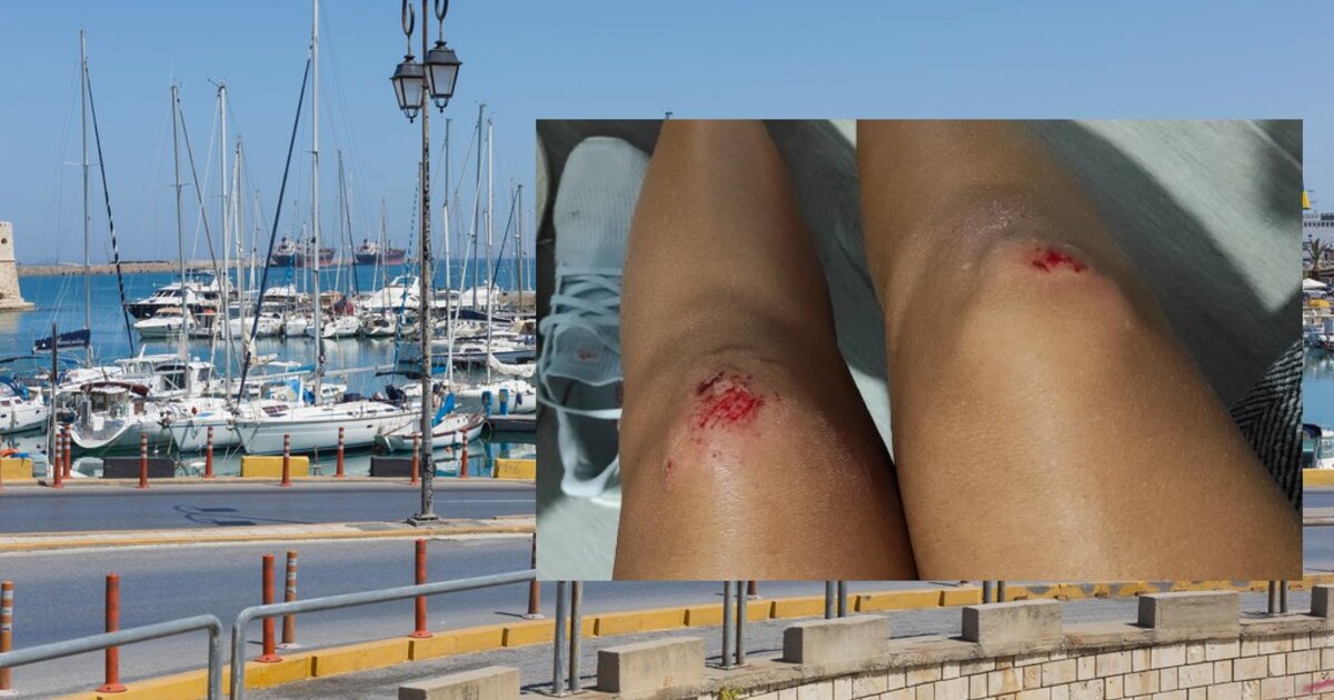 Προσφάτως, νεαρή Ηρακλειώτισσα που έκανε τζόκινγκ αμέριμνη στην περιοχή της Πλατείας 18 Άγγλων, δεν αντιλήφθηκε την προεξέχουσα βάση που συγκρατούσε έναν από τους πασσάλους με αποτέλεσμα να σκοντάψει ενώ έτρεχε και να πέσει στον δρόμο χτυπώντας τα γόνατα και τα χέρια της. Τα χτυπήματα την ταλαιπώρησαν με πρηξίματα και πόνους με την ίδια να θεωρεί τον εαυτό της τυχερό επειδή δεν τραυματίστηκε και στο κεφάλι, καθώς έπεσε τη στιγμή που βρισκόταν πολύ κοντά στο πεζοδρόμιο. Δίπλα της βρέθηκαν αμέσως περαστικοί και επιχειρηματίες της περιοχής για να τη βοηθήσουν, επισημαίνοντας μάλιστα ότι το φαινόμενο των ... πτώσεων είναι πολύ συχνό στο σημείο.