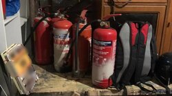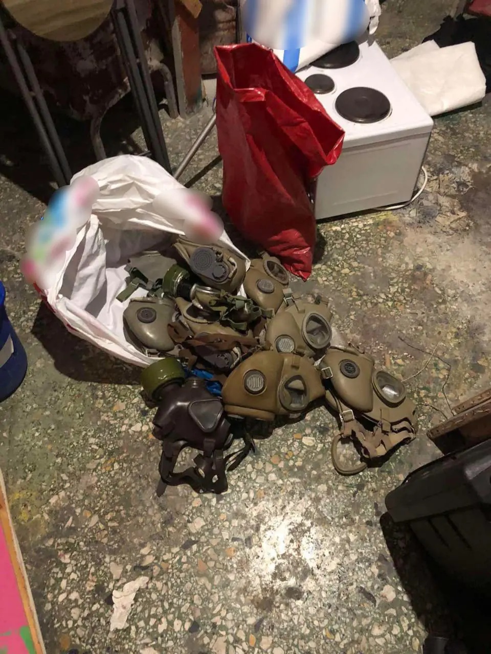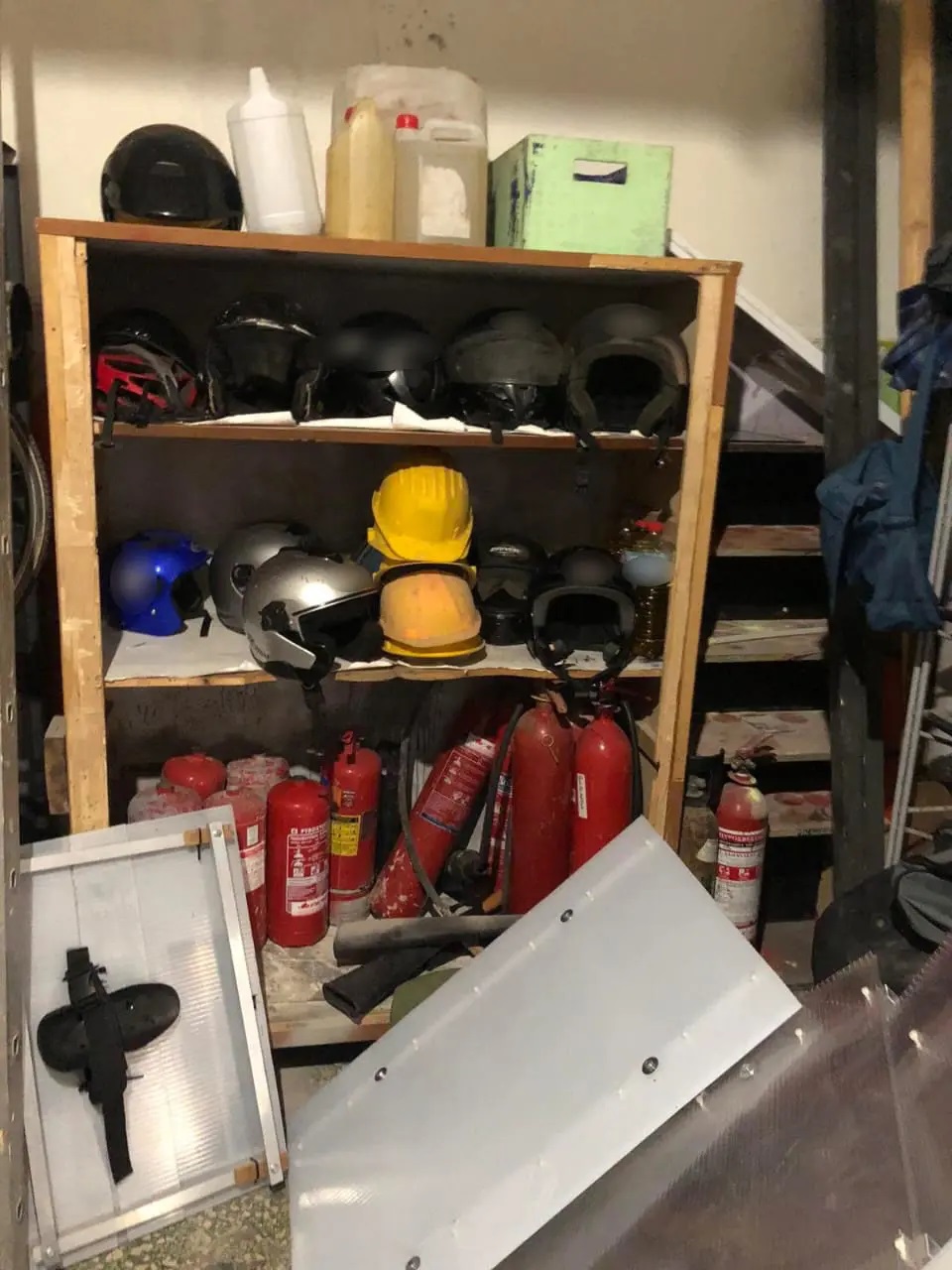 Κράνη, ξύλινα κοντάρια, αντισφυξιογονες μάσκες, πυροσβεστήρες και δοχεία κάποια από τα ευρήματα, που θα κρατηθούν ως πειστήρια της υπόθεσης.