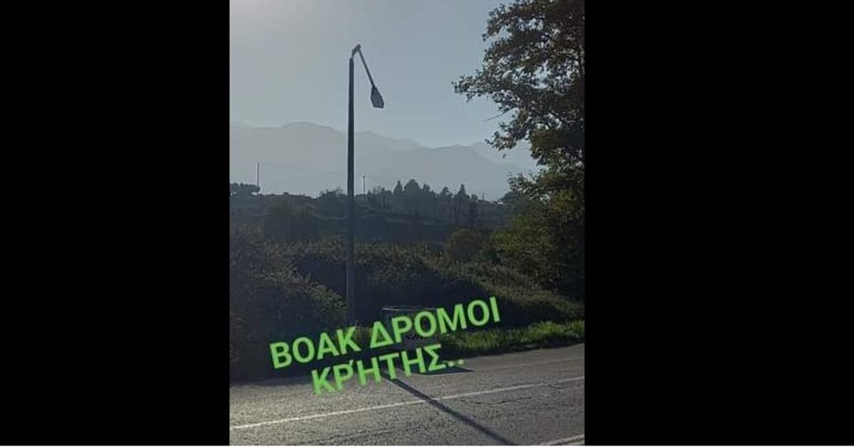 Όπως αυτή η κολώνα στις Βρύσες Αποκορώνου, επί του ΒΟΑΚ από την οποία - το πιο σημαντικό - είναι ότι κρέμεται το φωτιστικό, εγκυμονώντας κινδύνους για τους διερχόμενους οδηγούς!