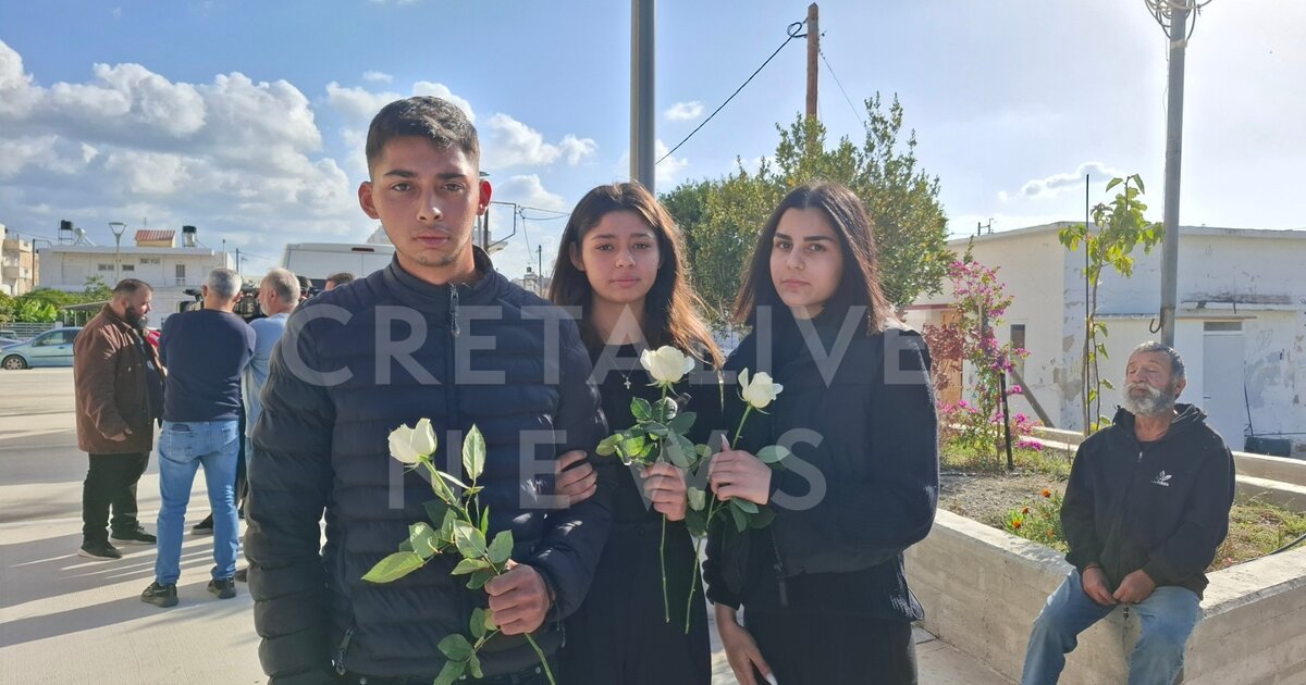 Με δάκρυα στα μάτια κι ένα λευκό λουλούδι στα χέρια, αποχαιρετούν τον Ραφαήλ Γαλυφιανάκη συμμαθητές και φίλοι του στο Τυμπάκι.
