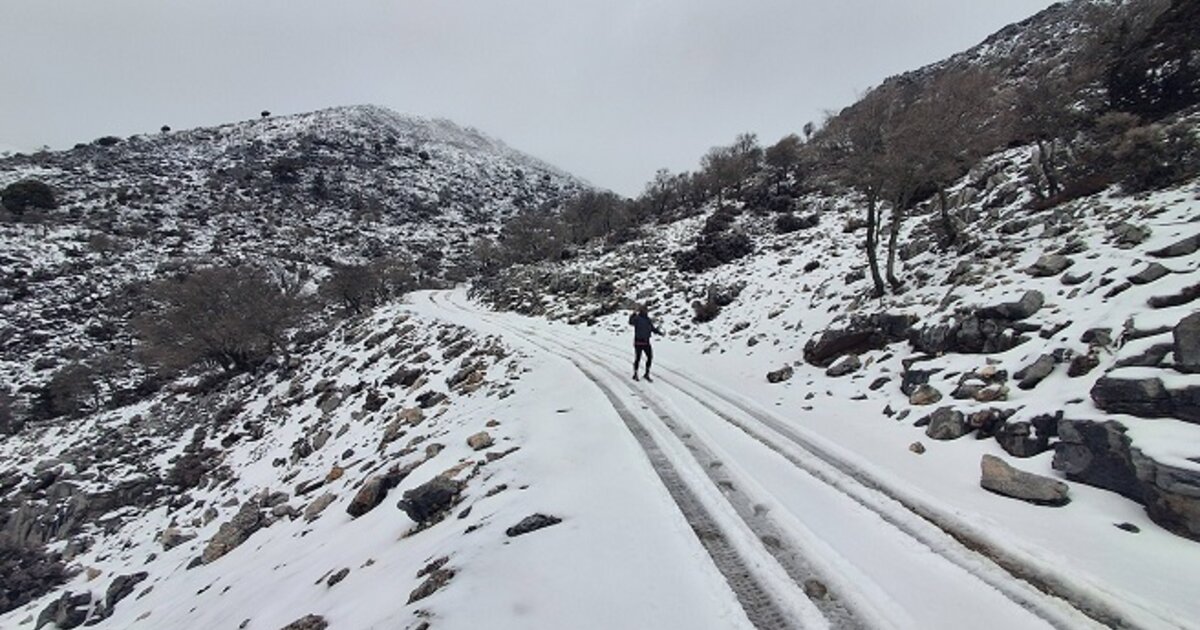 Εικόνες χειμωνιάτικου τοπίου και σπάνιες, κατέγραψε σήμερα από την ορεινή Γέργερη ο Αγιοβαρβαρίτης δρομέας μεγάλων αποστάσεων, Νίκος Καμπιτάκης.