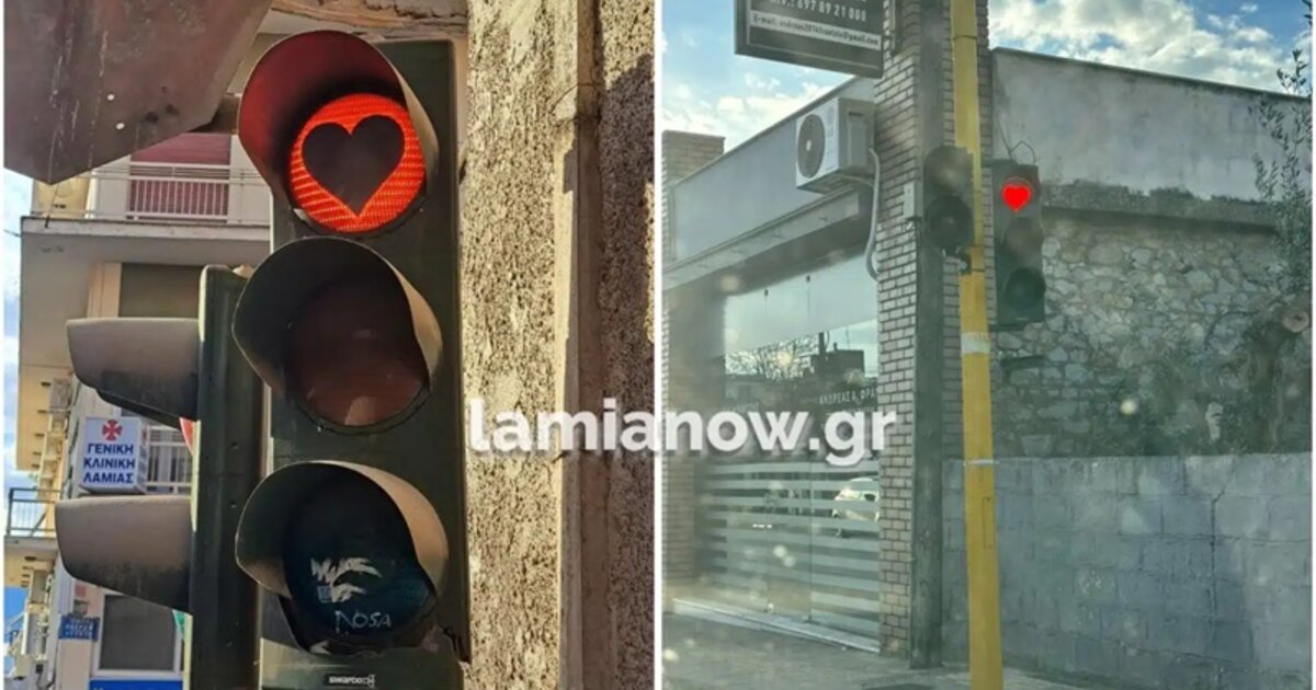 Στα φανάρια της πόλης όπως μεταδίδει και το lamianow.gr, αντί το γνωστό κόκκινο έχει… αντικατασταθεί με μια ολοκόκκινη καρδούλα η οποία τραβάει το βλέμμα των διερχόμενων οδηγών αλλά και περαστικών δίνοντας μια διαφορετική οπτική στην ρουτίνα της καθημερινότητας κάνοντας τους περισσότερους να χαμογελάσουν.