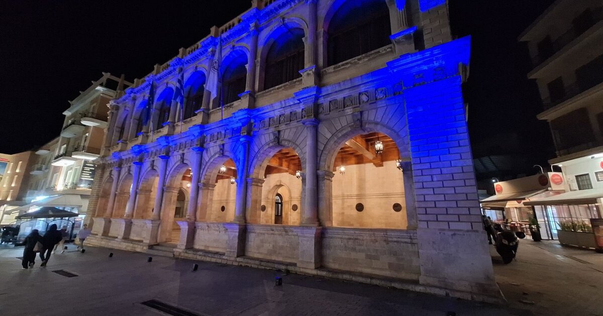 Με μπλε φωτισμό "ντύθηκε" η Λότζια, στο πλαίσιο της συμβολικής συμμετοχής του Δήμου Ηρακλείου στην Παγκόσμια Ημέρα Αυτισμού.
