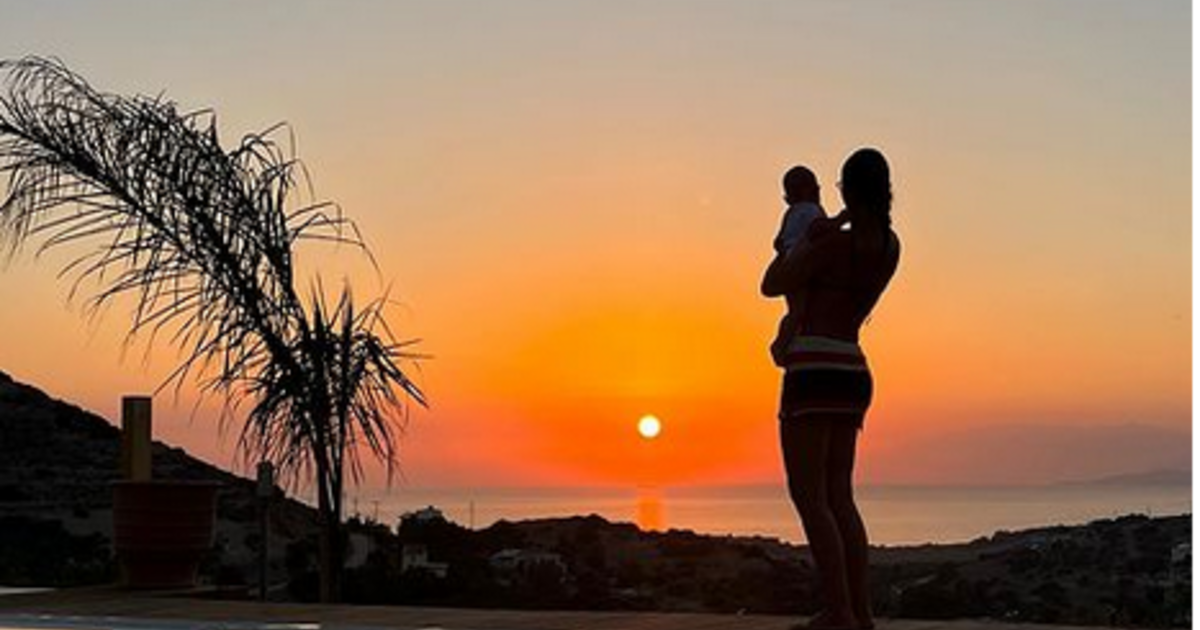 Η ίδια μάλιστα δημοσίευσε στο instagram φωτογραφίες όπου ποζάρει έχοντας στην αγκαλιά της γιό της -αλλά και μόνη της- με θέα ένα ειδυλλιακό ηλιοβασίλεμα.