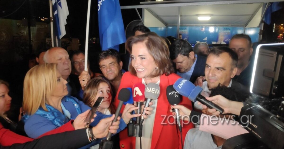 Συγκινημένη και ευχαριστημένη από το αποτέλεσμα των εκλογών δήλωσε η Ντόρα Μπακογιάννη από τα Χανιά. Η βουλευτής της Νέας Δημοκρατίας βρέθηκε το βράδυ της Κυριακής στην πλατεία 1866, στο κιόσκι του κόμματος, όπου δήλωσε τα εξής: