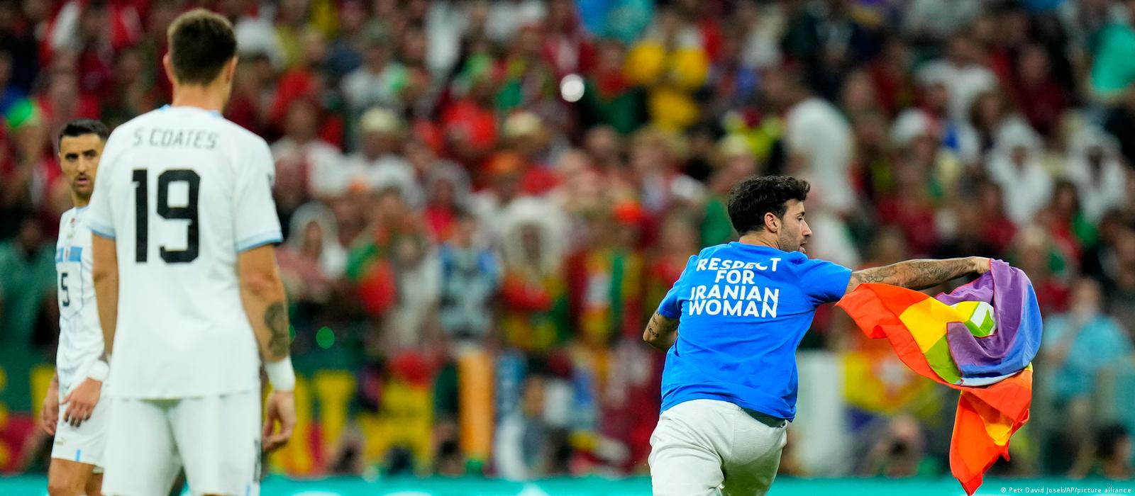 Ακτιβιστής παρενέβη κατά τη διάρκεια του αγώνα μεταξύ Πορτογαλίας και Ουρουγουάης διακόπτοντάς τον. Ο άνδρας εισήλθε στον αγωνιστικό χώρο κρατώντας μια σημαία ΛΟΑΤΚΙ και τρέχοντας σε μήκος του γηπέδου.