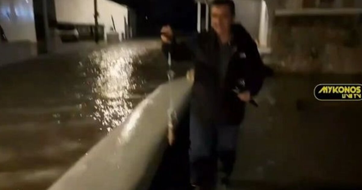 Η κακοκαιρία «Bettina» έπληξε και τη Μύκονο. Σε πισίνα μετατράπηκε η Μικρή Βενετία, ενώ ένα απίστευτο βίντεο δείχνει έναν Μυκονιάτη να ψαρεύει σε πλημμυρισμένο δρόμο και να βγάζει καλαμάρι!