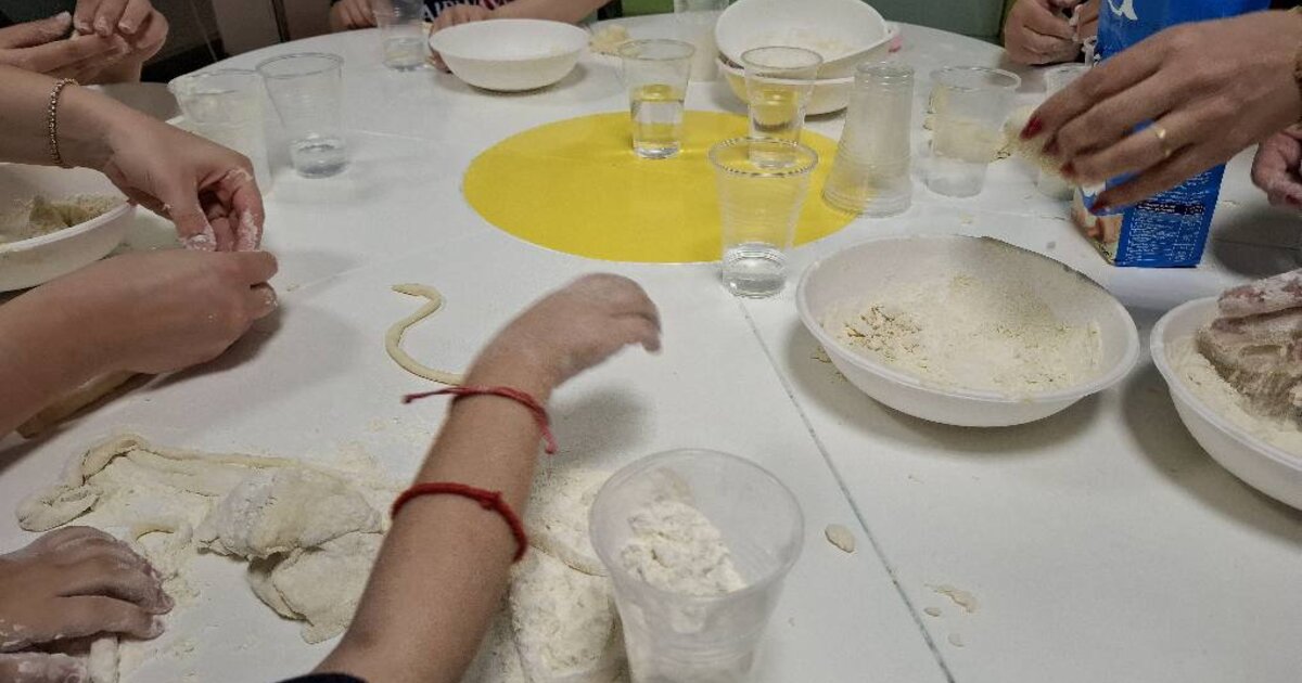 "Από το Πέραμα μας επισκέφτηκαν η Σταυρούλα, ο Αλέξανδρος, η Πόπη και ο Στέλιος!!!!! Φτιάξαμε ζύμη για τσουρέκια,μας έδειξαν πως τα πλάθουμε κι έπειτα παίξαμε και γελάσαμε !!!!