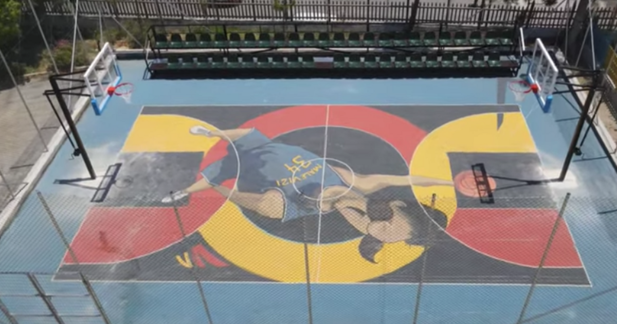 Όλα τα βλέμματα τραβάει το γκράφιτι που δημιουργήθηκε στο νέο γήπεδο μπάσκετ στην πλατεία Κατσαμάνη στο Γάζι.