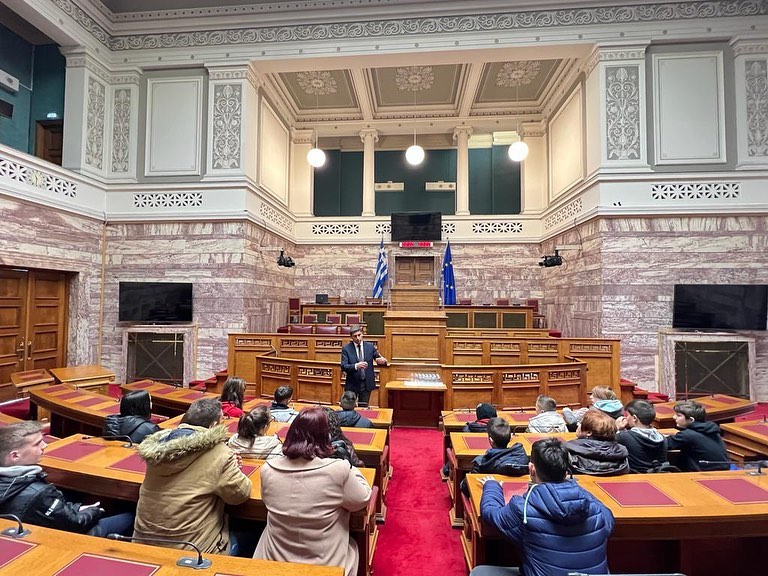 Τη χαρά να υποδεχθεί και να ξεναγήσει στο Μέγαρο της Βουλής τους μαθητές και τους εκπαιδευτικούςΚέντρου Ξένων Γλωσσών, από την ιδιαίτερη πατρίδα του, τις Μοίρες, είχε ο Υφυπουργός Πολιτισμού και Αθλητισμού και Βουλευτής Ηρακλείου, Λευτέρης Αυγενάκης.