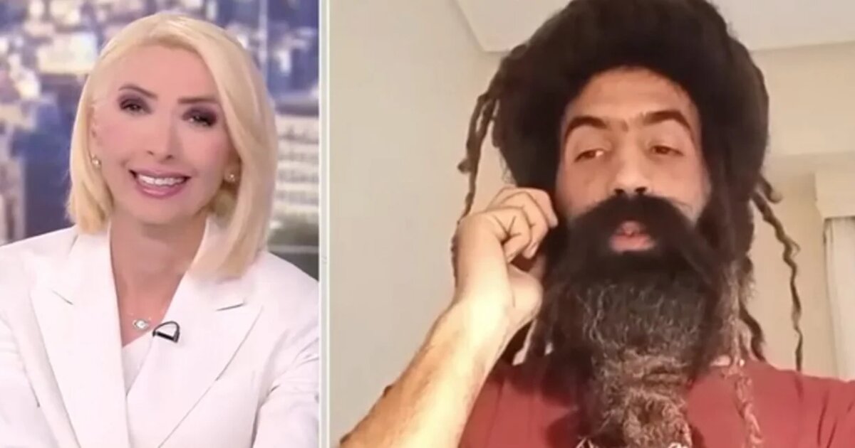 Η Μίνα Καραμήτρου - η οποία όπως παραδέχθηκε αιφνιδιάστηκε- μόλις αντίκρισε τον κ. Γιαννακόπουλο στο μόνιτορ κατέβαλλε μεγάλη προσπάθεια για να συγκρατήσει νευρικό γέλιο, όπως καταλάβαμε, λόγω του λουκ του μελισσοκόμου, ενώ η αντίδρασή της άρχισε να κυκλοφορεί παντού στα social media.