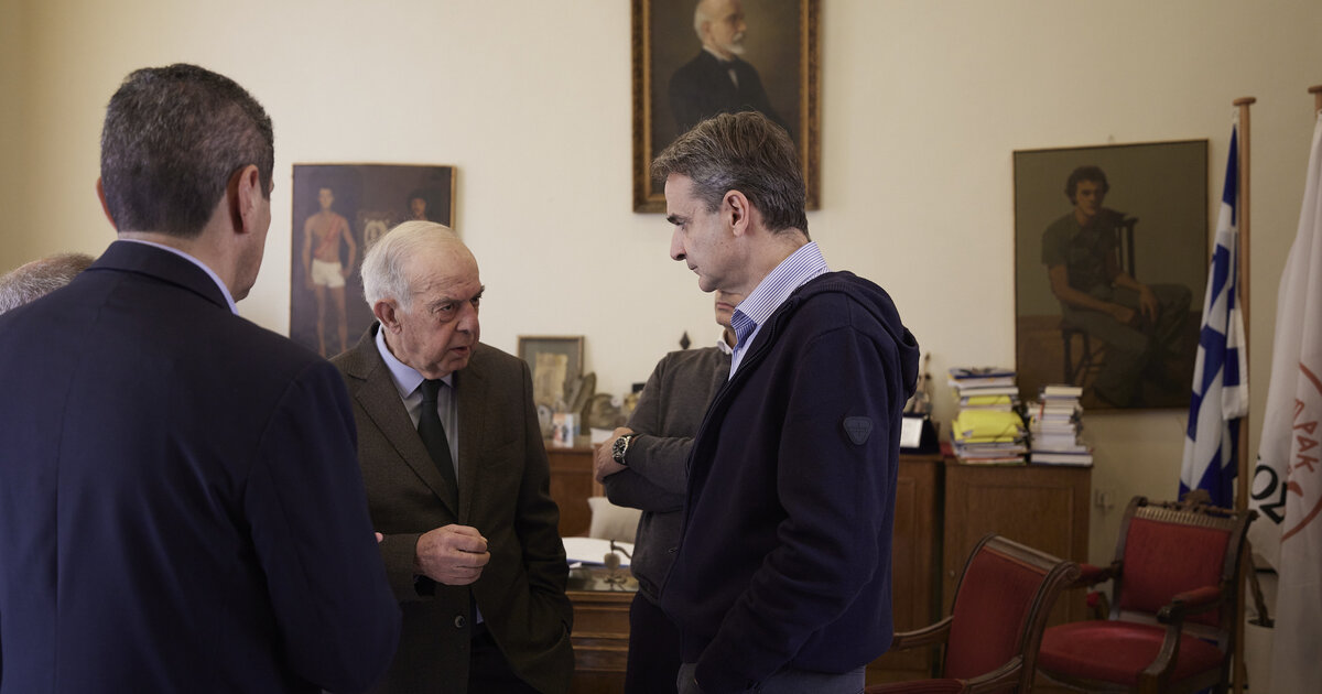 Ένα σύντομο τετ-α-τετ είχαν ο πρωθυπουργός Κ. Μητσοτάκης με το δήμαρχο Ηρακλείου Βασίλη Λαμπρινό, λίγο πριν την παρουσίαση του Αναπτυξιακού Προγράμματος για την Κρήτη, στο γραφειο του δεύτερου στη Λότζια.
