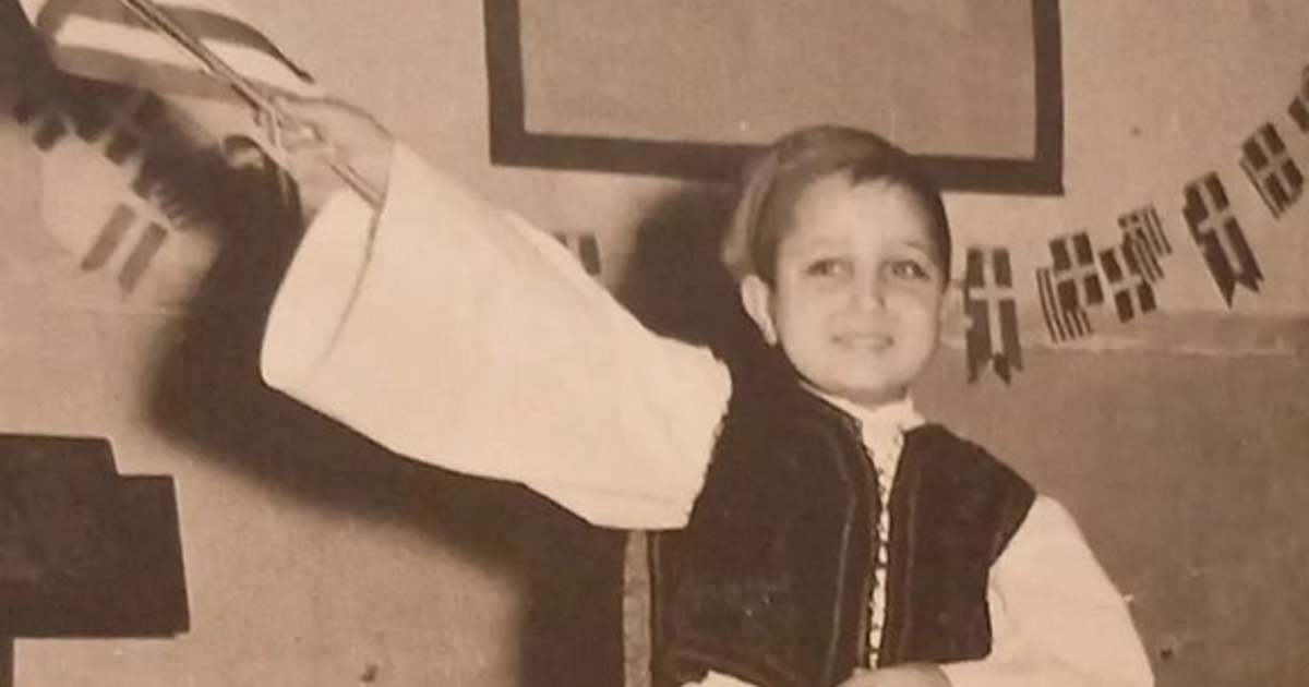 Συγκεκριμένα, η φωτογραφία απεικονίζει τον ίδιο, σε μαθητική παράσταση για την 25η Μαρτίου, φορά την παραδοσιακή φουστανέλα και κρατά σημαιάκι.